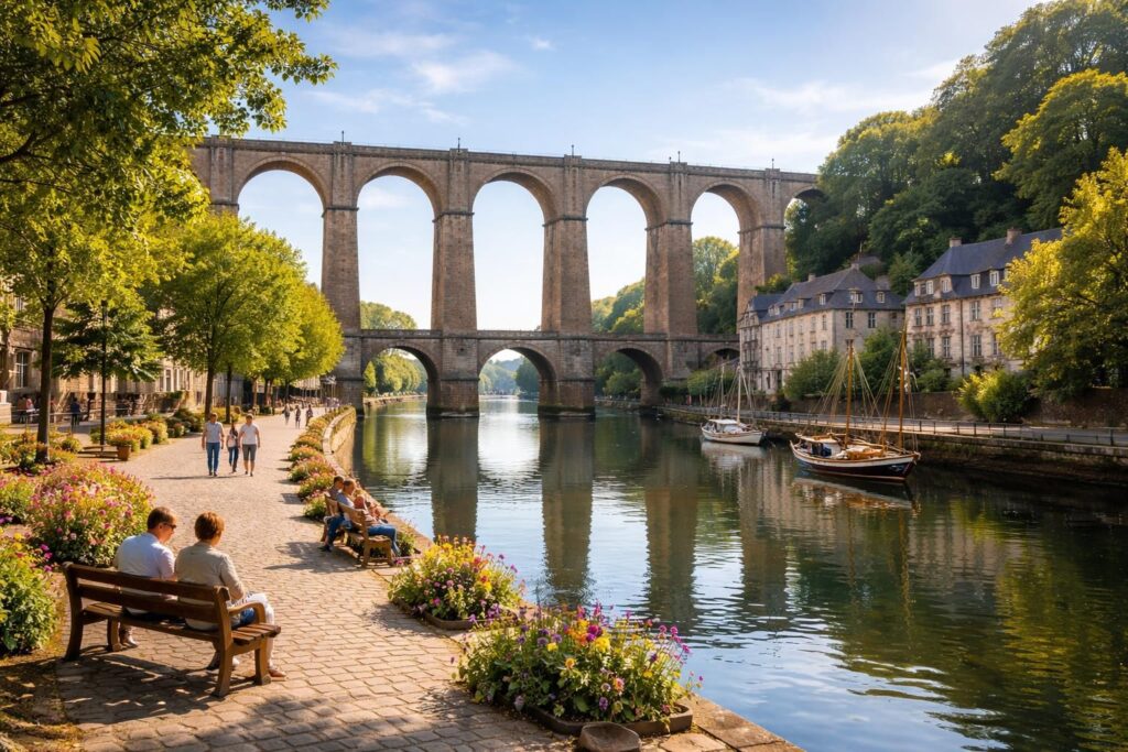 Accessibilité et expérience : pour accéder au premier niveau du viaduc à pied, il faut emprunter des ruelles étroites, caractéristiques de Morlaix, et gravir quelques escaliers. Cette ascension, bien que tonique, en vaut largement la peine. Le panorama qui s’y dévoile est souvent décrit comme l’un des plus beaux de la région. Les visiteurs peuvent également opter pour une excursion en train, permettant de découvrir la ville dans toute sa splendeur sous un autre angle.